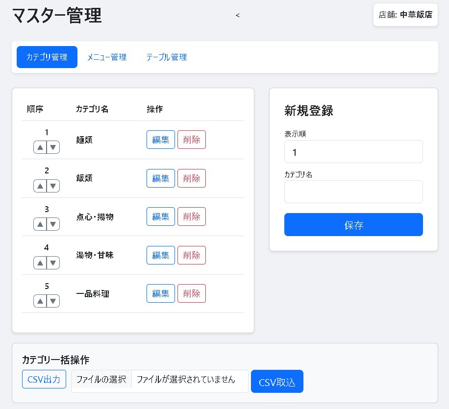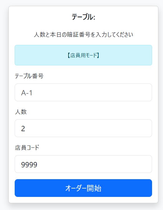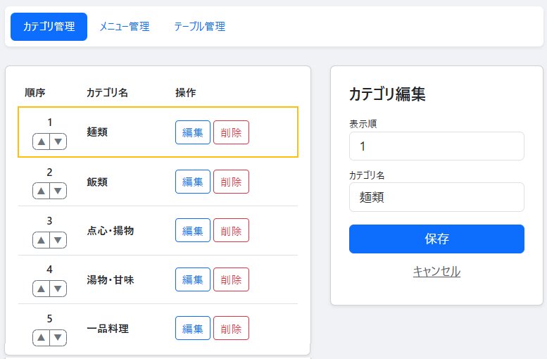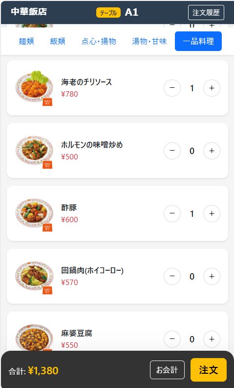 - 顧客が自身でオーダを入力するのと同一画面でメニュー一覧から商品を入力します。