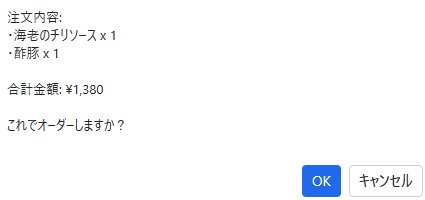 - 「注文」ボタンを押すと、厨房へデータが送信されます。