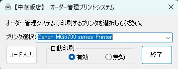 ※)店内のプリンタに印刷するため、このアプリを動かしておく必要があります。