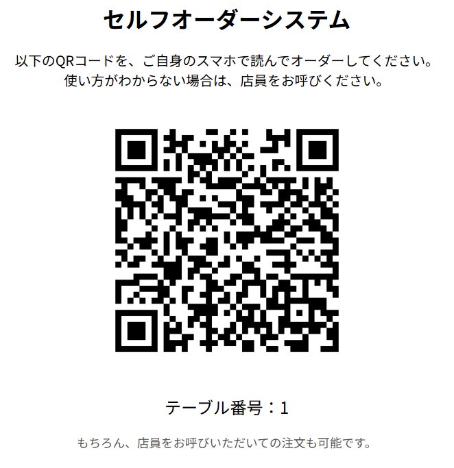 QRコード表示:テーブルに設置するQRコードを表示します。